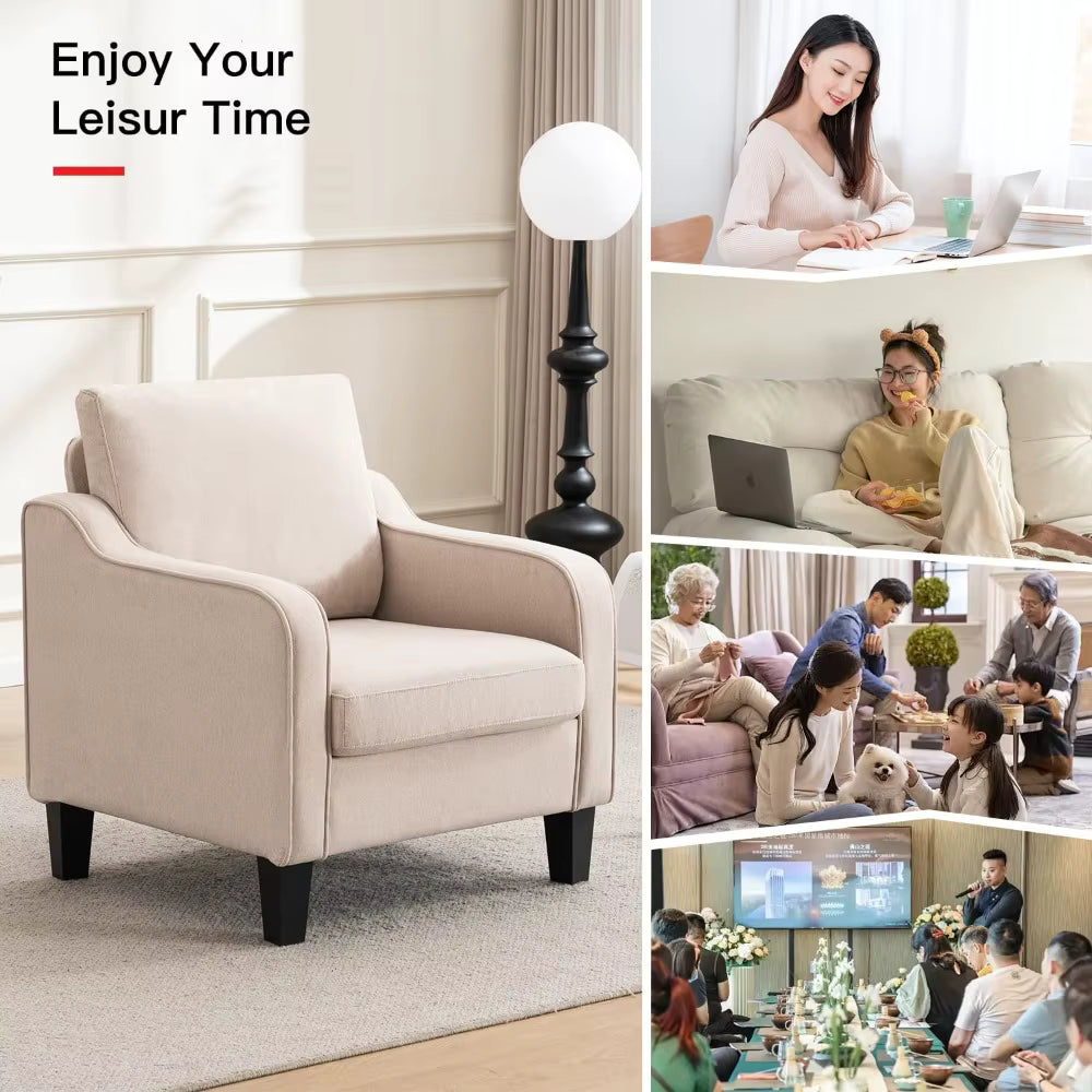 Beige Accent Chair Comfy, Plush Reading Nook & Corner Chairs