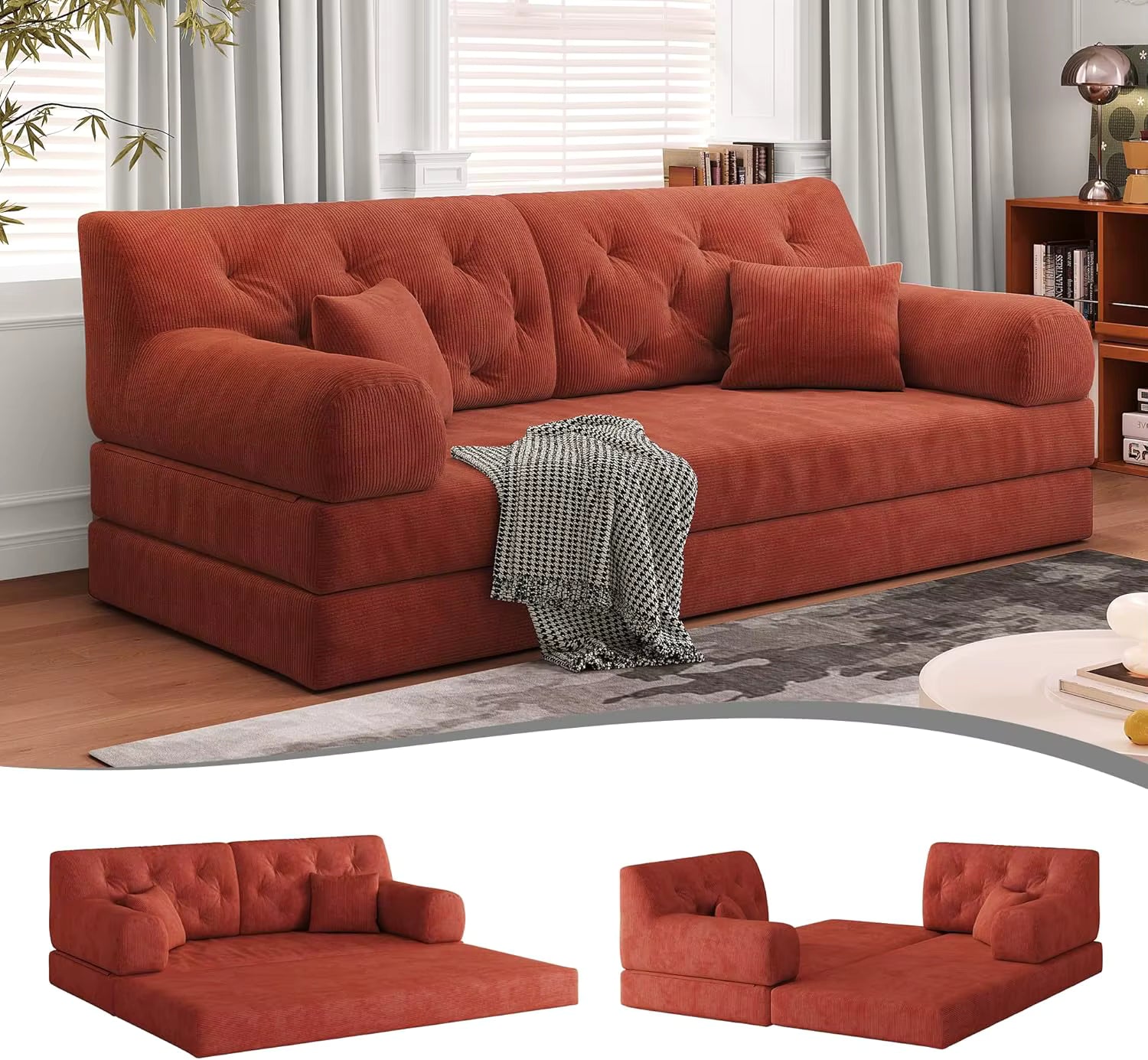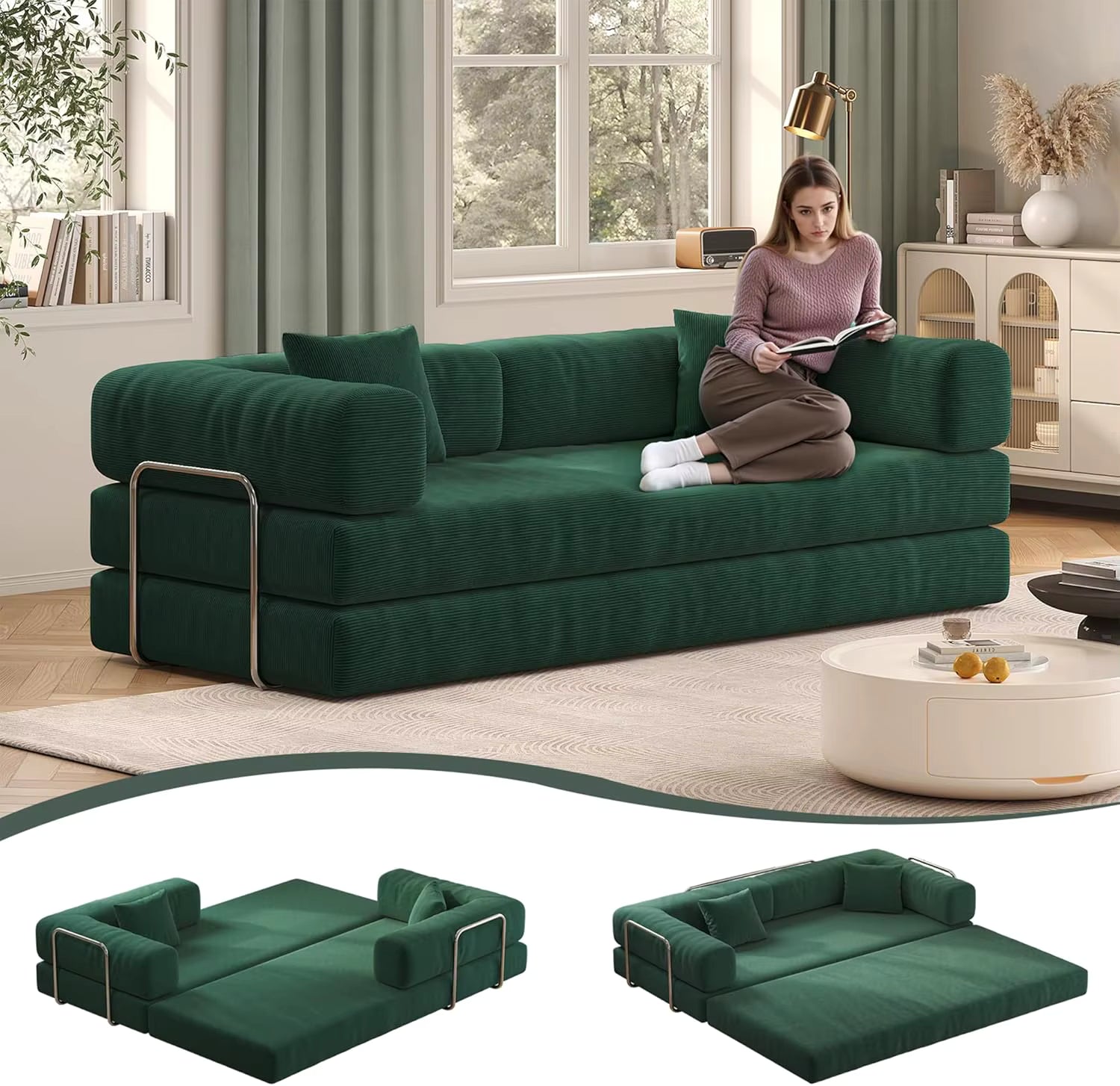Convertible Sofa Bed with Pillows, Corduroy with Fixed-Shape Frame