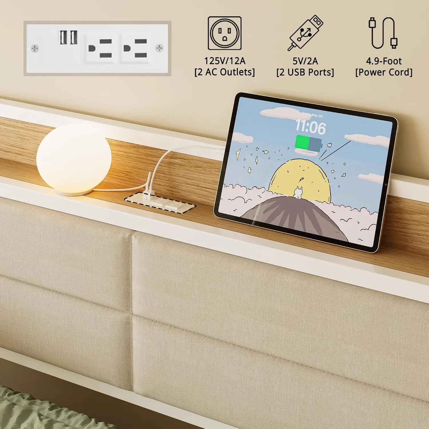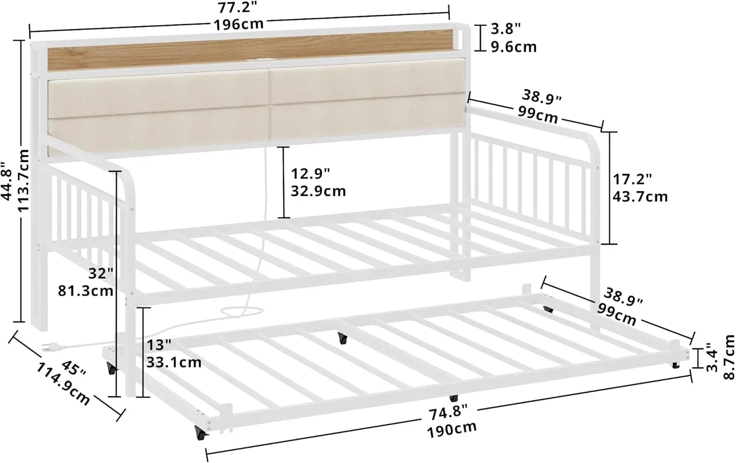 Daybed with Trundle, with Upholstered Headboard and Charging Station