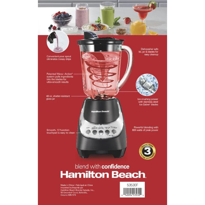 Wave Action Quiet Blender, 48 oz. Glass Jar, 12 Blending Functions